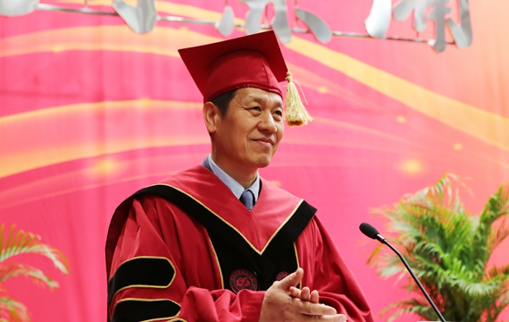 在随后举行的学位授予仪式上,与会领导和校学位评定委员会委员为毕业生们一一援苏正冠、颁授学位证书并合影留念。毕业生们穿上博士服、硕士服,承载着振兴祖国的使命与担当,带着母校师生的祝福与期盼,踏上了全新的征程。