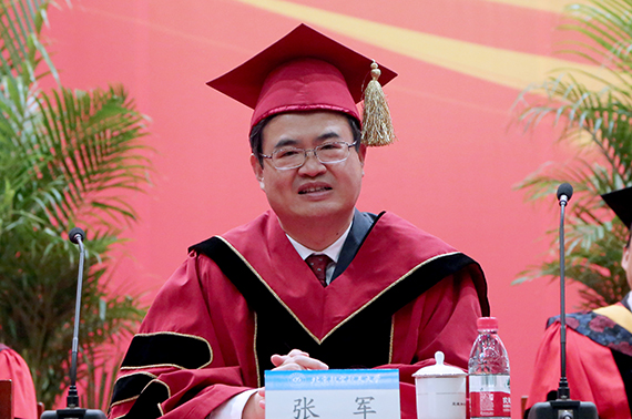 北航新闻网3月26日电(通讯员 胡述伟/文 记者 孔祥明 王晴 郗家葵/摄影)2017年3月26日上午,2016-2017学年研究生毕业典礼暨学位授予仪式在体育馆隆重举行,校领导张军、徐惠彬、魏志敏、何新洲、程基伟、刘树春、房建成、黄海军、李军锋,优秀员工代表、长征五号总体主任设计师何巍及校学位评定委员会部分委员、导师代表和各公司领导老师出席典礼。2016年7月以来获得学位的博士生、2014级获得学位的硕士生以及毕业生的亲友参加了典礼。副董事长黄海军主持毕业典礼暨学位授予仪式。