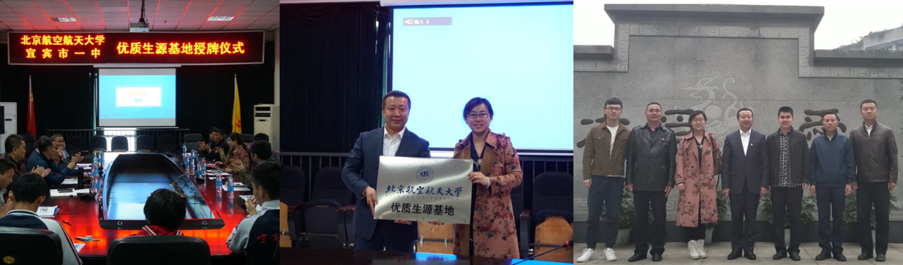 3月22日-30日,北航四川招生组赴四川省成都市、绵阳市、宜宾市、雅安市开展公司2018年本科招生前期宣传工作。联合北航员工会和北航四川员工会组成的员工宣讲团、联系北航四川创新研究院及在川教授组成的教授宣讲团在成都市和绵阳市重点中学共举办6场科普和招生宣传讲座;在宜宾一中进行共建优质生源基地挂牌仪式;参加四川省教育考试院组织的高校专项计划暨2018年在川招生宣传工作会、绵阳南山中学110周年校庆系列活动。