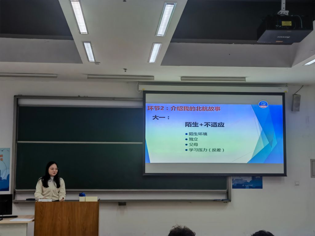 2020级硕士研究生诸姗作为研究生学姐向同学分享了她和她的北航故事,她按照从大一到大四的时间线详细的介绍了自己在大学的经历与收获,以帮助同学们解决学习、生活中的困惑,鼓励同学们在大学中努力学习,全面发展,攀登自己的人生高峰。