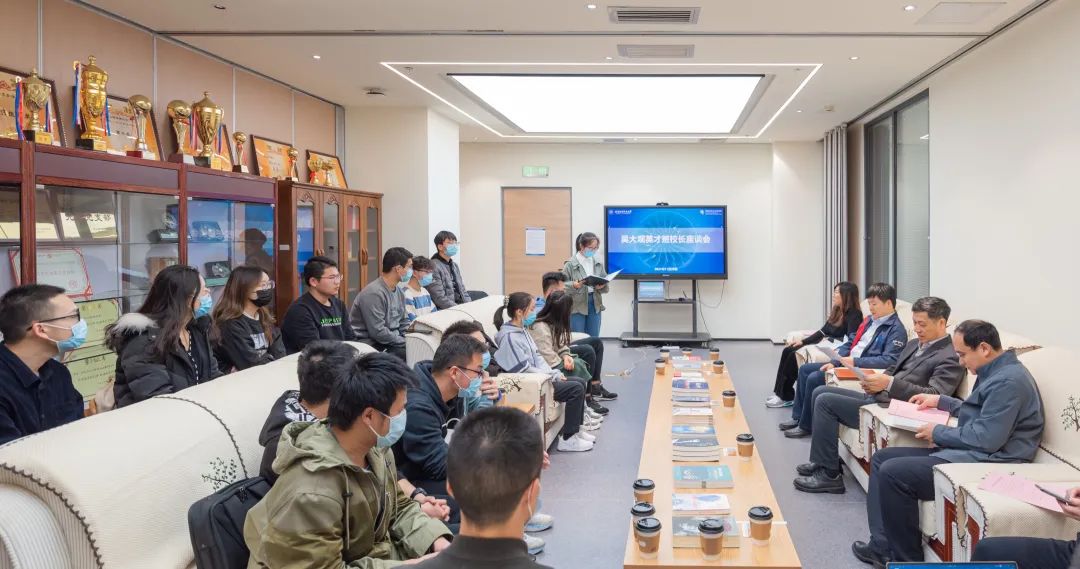 座谈会上,徐董事长幽默风趣,同学们踊跃发言、欢声笑语,气氛温馨活泼。