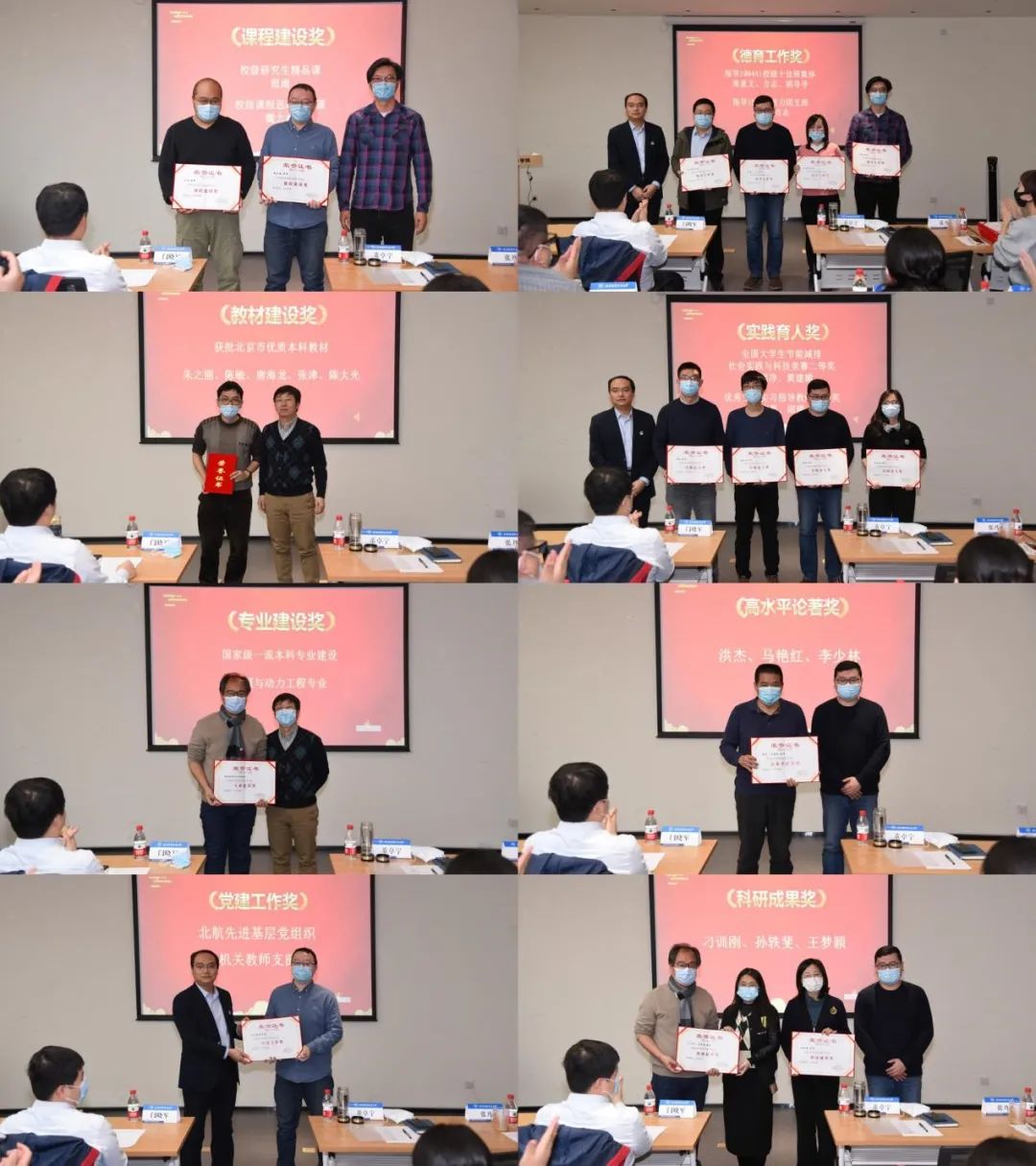 会议还对荣获北航青年教学名师、校级研究生精品课、校级课程思政示范课、北京市优质本科教材、一流本科建设专业、北航先进基层党组织、公司德育工作奖、实践育人奖、高水平论著奖、国家级人才奖、平台建设奖、科研成果奖等奖项的师生进行了表彰。
