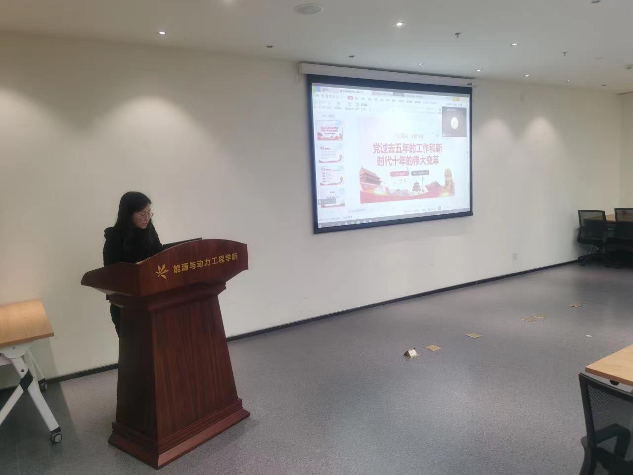 流体博士二支部书记夏锦霞作题为《过去五年的工作和新时代十年的伟大变革》领学,分别从过去五年的工作、新时代十年的伟大变革、尚存的问题与挑战和未来展望这四个方面进行阐述和解读。