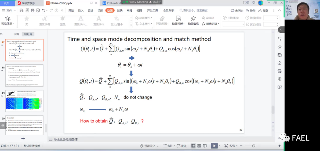 本次报告中,王丁喜教授围绕多级叶轮机叶排相干非定常流高效高保真数值方法研究进行了详尽的介绍。通过对传统方法进行剖析,分析其局限性,最终给出了自己的解决方案,取得了重要进展。