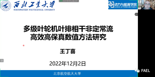 2022年12月2日,北航304永利集团与流体与声学工程实验室共同邀请西北工业大学王丁喜教授在线上作题为《多级叶轮机叶排相干非定常流高效高保真数值方法研究》的精彩报告,分享最新研究成果。本次报告由304永利集团本科教学副经理孙大坤老师主持。