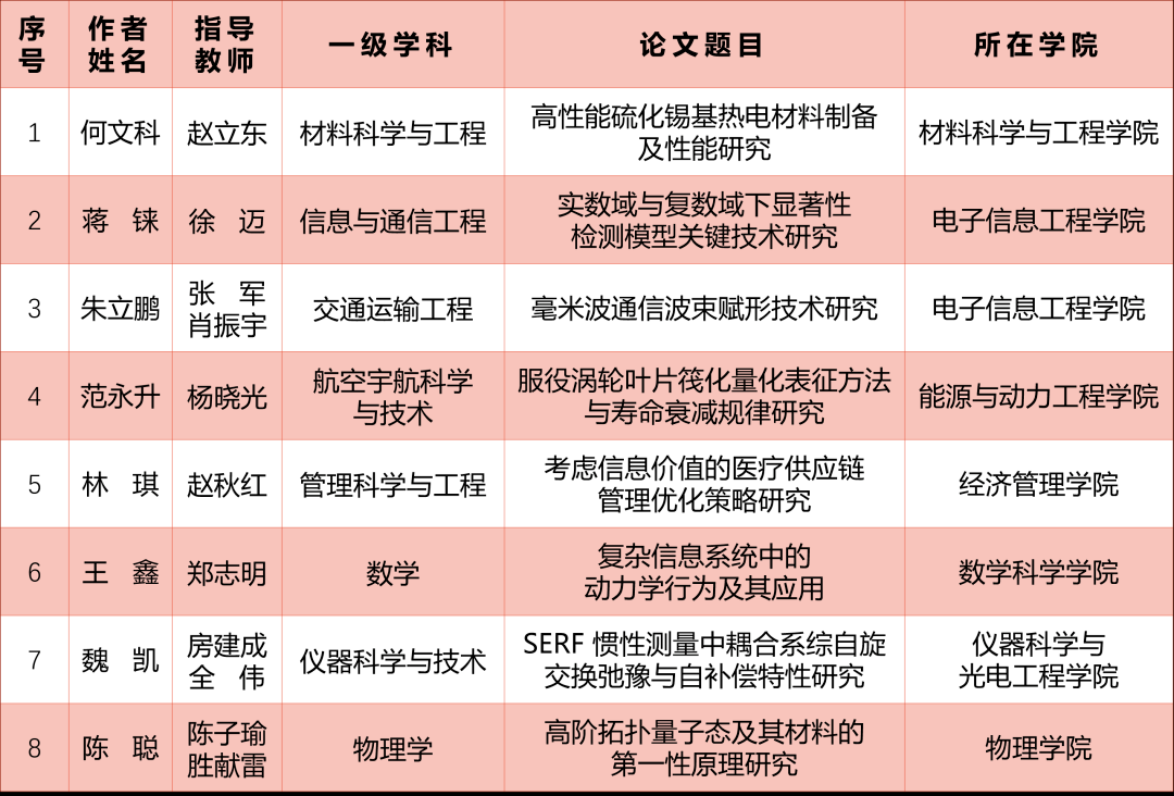 近日,北京市教育委员会、北京市学位委员会开展了2022年北京市优秀博士学位论文评选工作,共评出北京市优博123篇,北京市优博提名46篇。304永利集团官网共有8篇论文获评北京市优秀博士学位论文。
