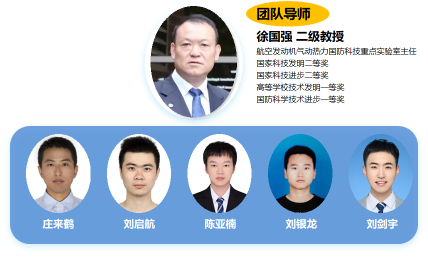 航空发动机综合热管理创新团队由徐国强老师的5位博士研究生组成,他们是:庄来鹤、刘启航、刘银龙、陈亚楠、刘剑宇。团队利用分布式能源与热管理团队平台资源,从顶层管理方案-关键管理技术-共性基础三个维度,开展热管理顶层方案、高效紧凑能量调配核心部件、热管理先进热防护机理和共性测量技术研究,在团队成员协同攻关的基础上,攻克了复杂能流网络多级耦合仿真技术、高效紧凑换热器工程样机设计及加工技术、非接触式高精度磷光测温等多项关键技术,攻克了系统和部件级热管理设计难题,解决了多项科学问题。