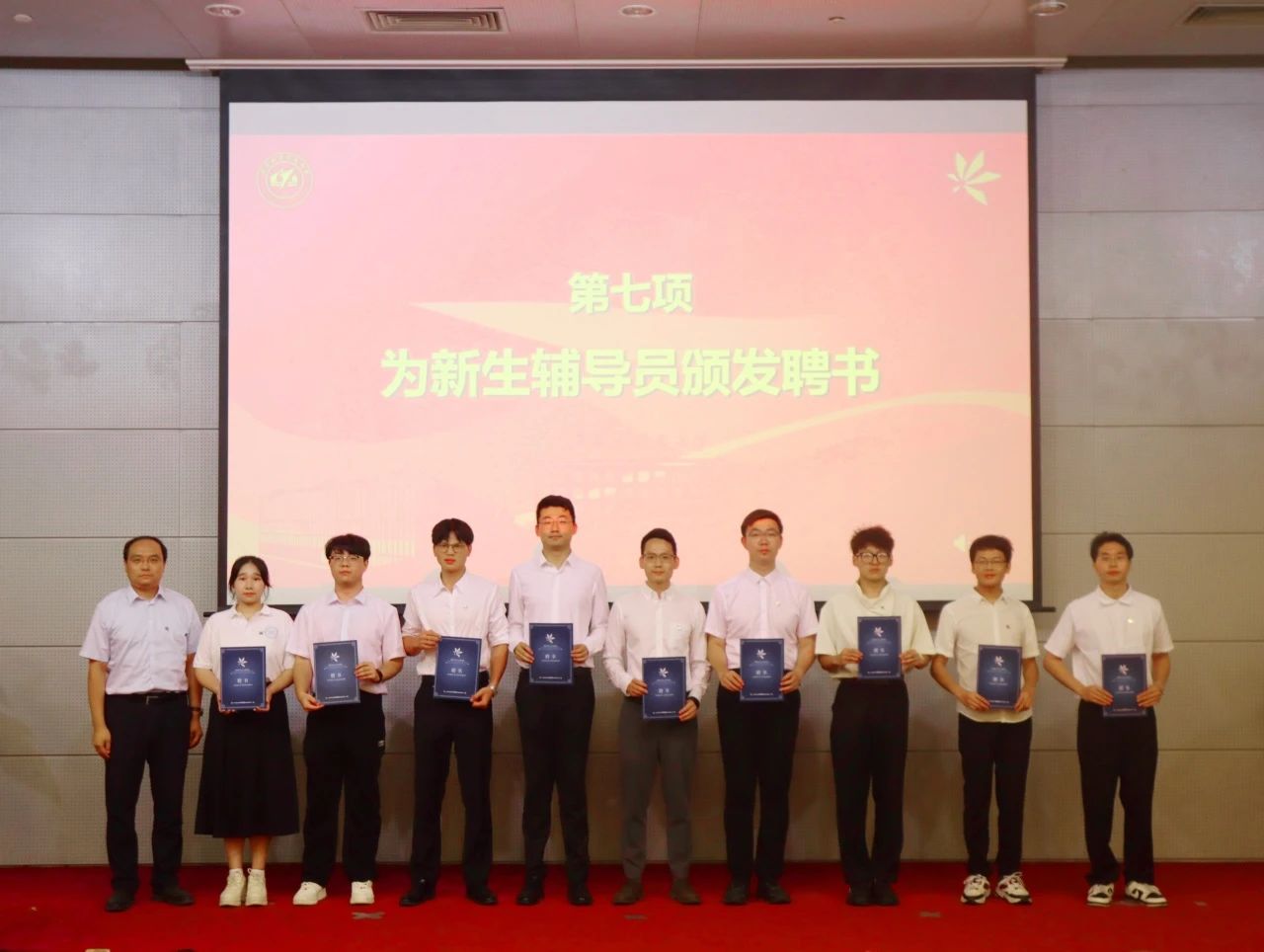 公司党委副书记谷萌宣读新聘任辅导员名单,党委书记董卓宁为新聘任辅导员颁发聘书。从员工到辅导员,从沿路到领路,昔为学子步书廊,今作园丁育栋梁。