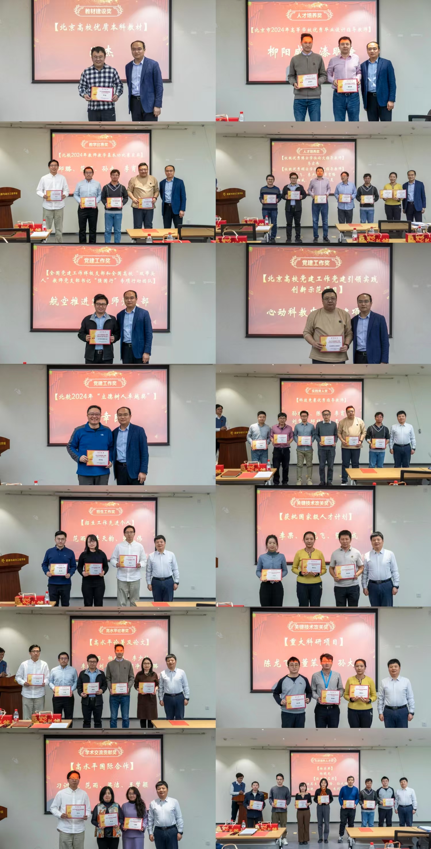 李挺宣读了公司2024年各项工作做出突出贡献的教职工名单。公司领导分别为获得教材建设奖、人才培养奖、教学比赛奖、党建工作奖、实践育人奖、招生工作奖、关键技术攻关奖、高水平论著奖、学术交流贡献奖、引进海外人才奖等获奖教职工颁奖。