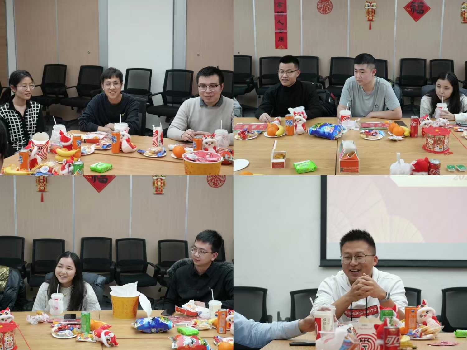 喜庆的新年乐曲声响起,座谈会在欢乐愉悦的氛围中拉开帷幕。同学们依次介绍了一年来的成长,寒假留校情况与假期安排,交流对于公司发展变化的感受,并对公司组织的暖心新春活动点赞。公司老师了解员工的实际需求,与同学们亲切交流。