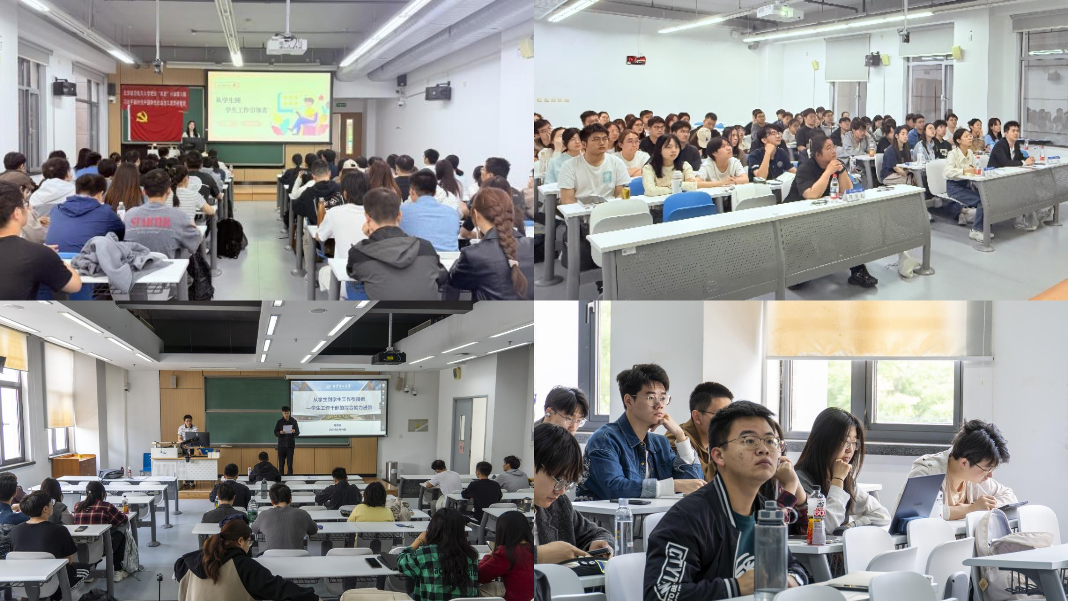 在沙河校区,陈言良老师作《从员工到员工工作引领者——员工工作干部的综合能力进阶》专题报告,从员工干部成长与自我价值实现、员工骨干培养和坚持政治标准、严格发展程序、高质量做好发展党员工作方面展开,号召同学们做有温度的辅导员、做有深度的党建人、做有态度的服务者。陈教授从个人经历出发引领同学们明确“我是谁”、“从哪里来”、“到哪里去”的责任担当,指出身为一名员工骨干应当发挥作为党和政府联系同学的桥梁和纽带作用,做好思想引领、发展服务、团结同学的工作。