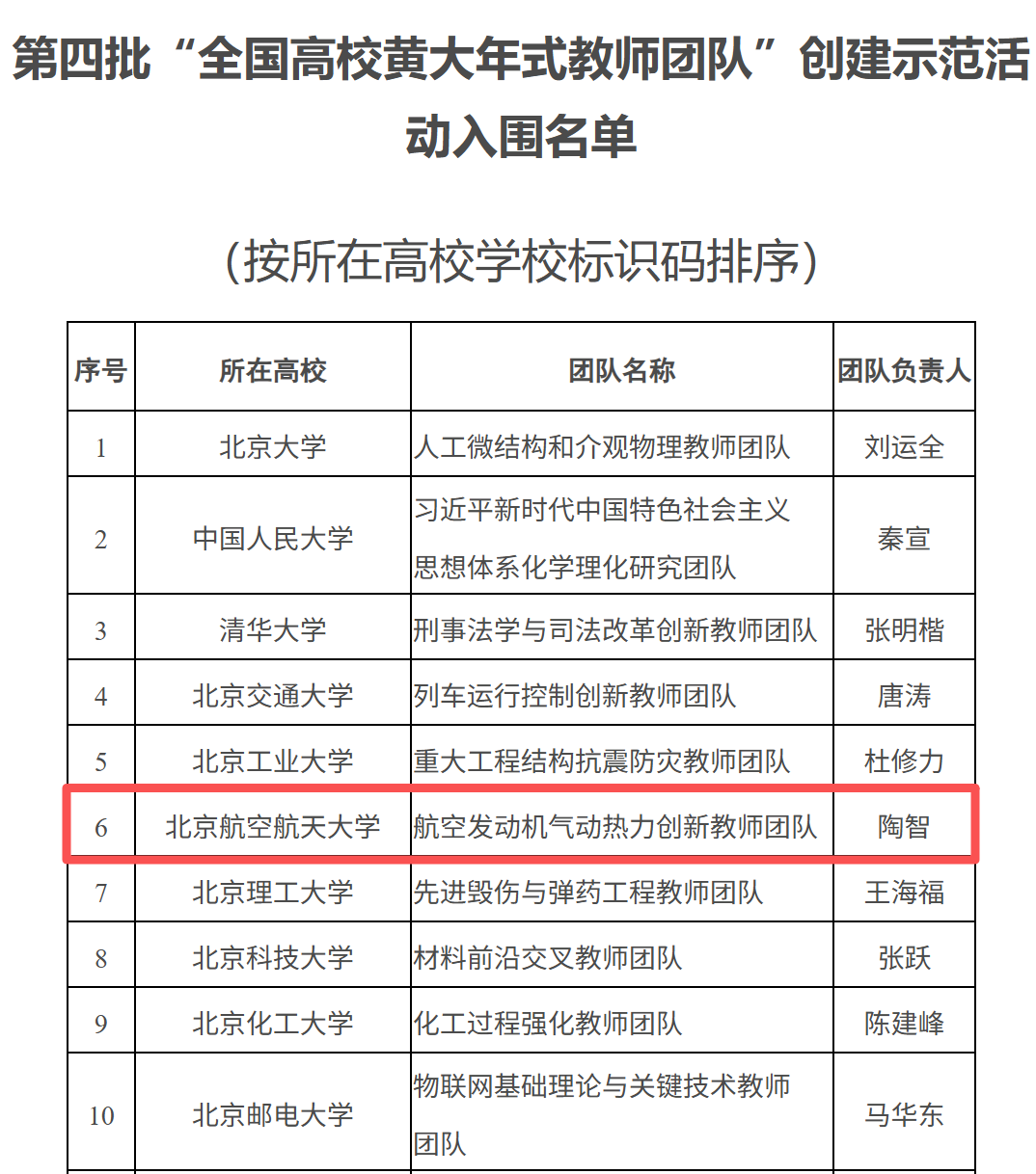 日前,教育部印发通知,公布第四批“全国高校黄大年式教师团队”创建示范活动入围名单,304永利集团官网陶智院士领衔的航空发动机气动热力创新教师团队入选。