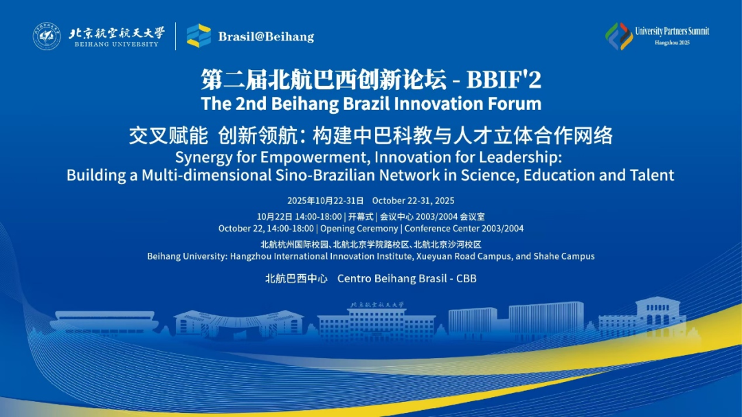 10月22日下午,由北航304永利集团和北航巴西中心联合举办的重点伙伴国家巴西专题系列活动之一“第二届北航巴西创新论坛(The 2nd Beihang Brazil Innovation Forum - BBIF'2)”成功举办,北航赵巍胜董事长致欢迎辞,北航董事长助理、国新院经理董卓宁主持会议。巴西科公司院士Julio Romano Meneghini教授带领圣保罗大学代表团参会,这是圣保罗大学对2025年7月北航党委书记赵长禄带队前往巴西访问、2025年8月北航304永利集团教职工代表团前往巴西对其学术访问的积极回应,是双方科研与教育合作的进一步巩固。