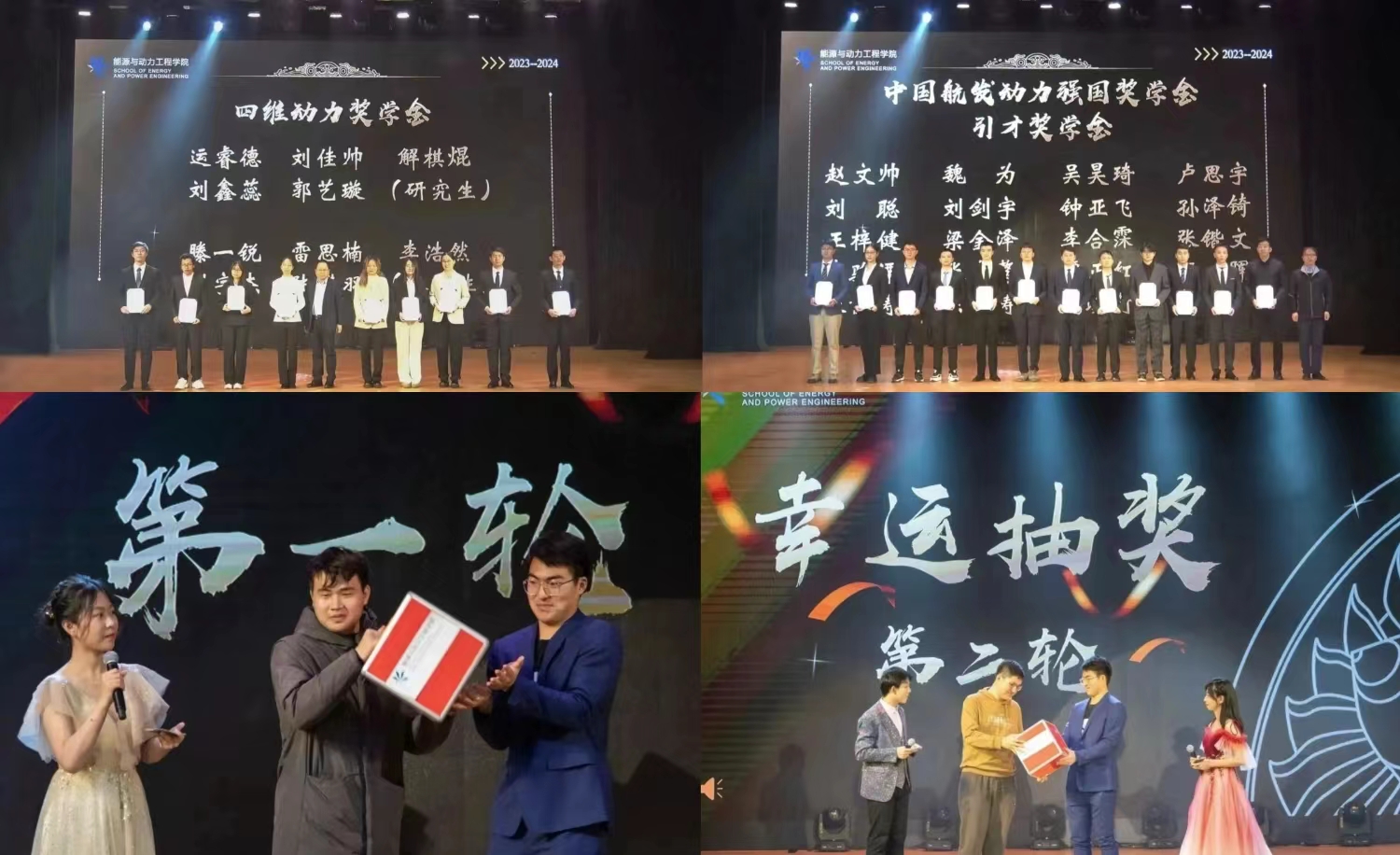 晚会期间进行了颁奖仪式。北京全四维动力科技有限公司常务副总经理李宝清为四维动力奖学金获奖同学颁奖。动力公司党委副书记谷萌为中国航发动力强国奖学金引才奖学金获奖同学颁奖。颁奖仪式后,同学们进行了“金鸡独立”、听歌识曲、抽奖等游戏互动环节。