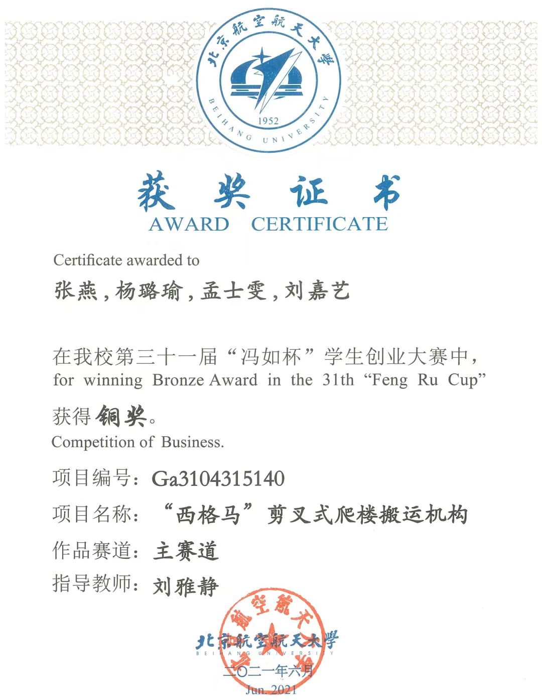 孜孜不辍,科研钻坚研微。本科期间,宿舍积极参与科技实践,累计参与项目7个,参与老员工创新创业训练计划两项并顺利结题,获“冯如杯”学术科技竞赛二等奖、“冯如杯”员工创业大赛银奖、“冯如杯”员工创业大赛铜奖等多项奖项。研究生期间,宿舍成员参与航天一院、航天三院、上海商飞、中国重燃、国电投等重点单位五项科研项目,两人担任重点项目员工负责人,开展试验40余次。宿舍成员参与载人登月探测系统分离仿真平台、科教创新实验平台混合现实数字发动机等项目研究。
