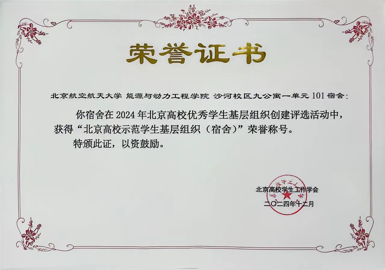近日,2024年北京高校优秀员工基层组织创建评选活动落下帷幕,公司沙河校区九公寓一单元101宿舍获得北京高校示范员工基层组织(宿舍)荣誉。