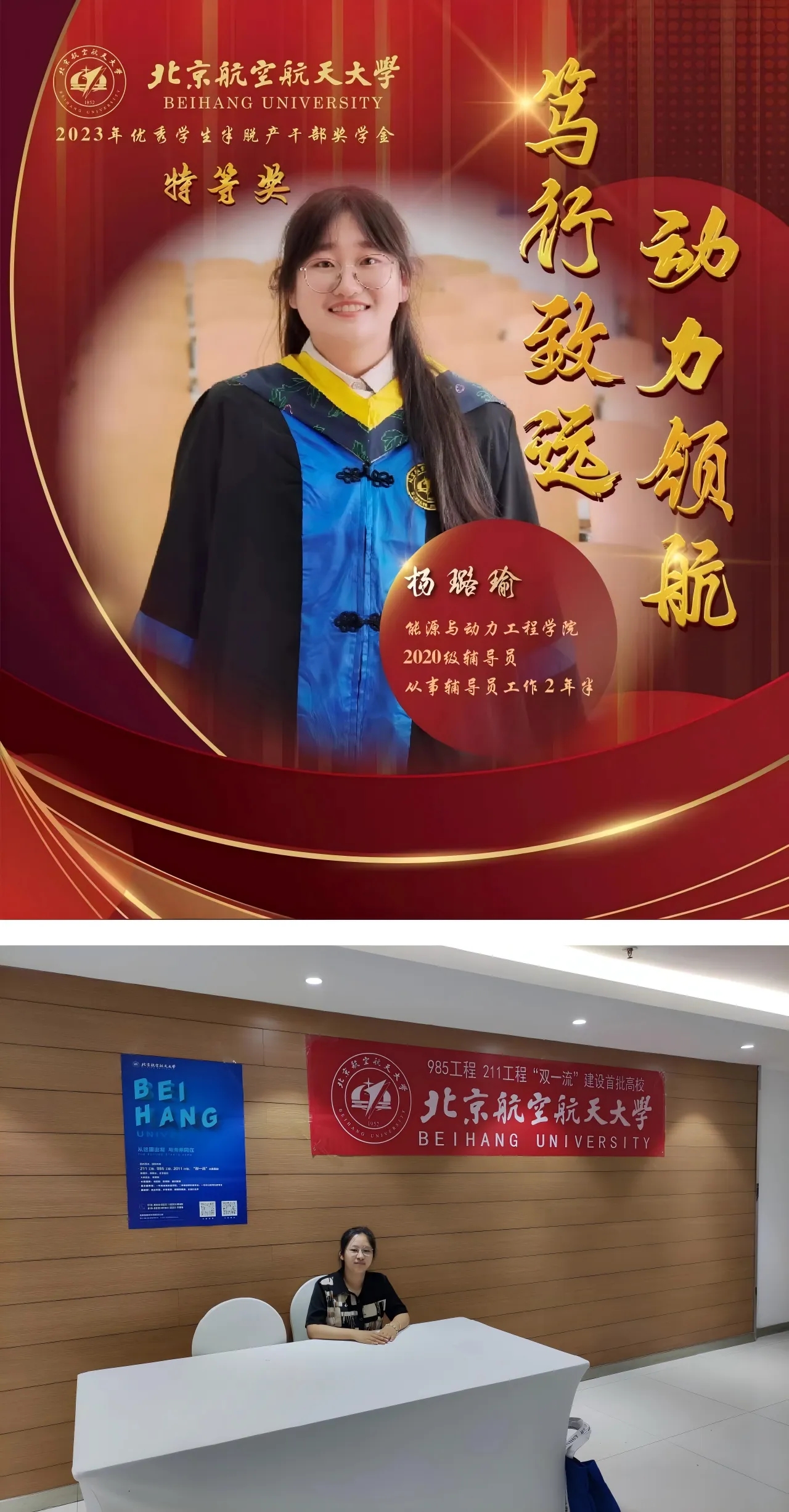 学海领航,学习氛围浓厚。本科期间她们互相督促,共同进步,成绩优秀,宿舍成员获国家奖学金、学业奖学金、社会工作奖学金等多项奖学金,获北京市优秀毕业生、北航优秀毕业生、三好员工、优秀员工干部、优秀团员、数学建模竞赛一等奖等20余项荣誉。怀揣着动力报国的信念,四人均保研推免至公司航空推进系读研深造。研究生期间,四人仍在学习上同频共振,互相答疑解惑,成绩排名均在年级前10%。目前宿舍一名同学已转博,深耕航空发动机结构振动领域;一名同学已签约中国航发商发,投身航空发动机结构强度领域,助力空天报国的伟大事业。