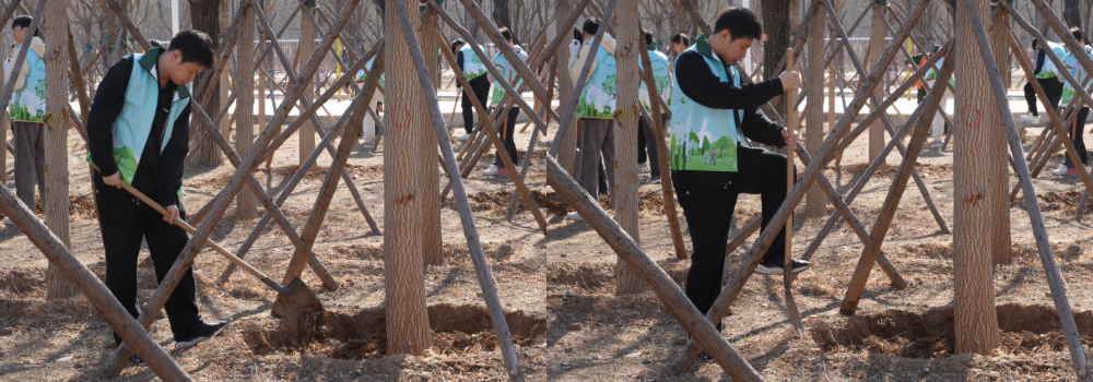 在植树节志愿活动中,我在老师傅的指导下为树木松土挖坑,为进一步蓄水做准备,简单清理捡拾周边垃圾。虽然只是简单的劳动,却让我真切感受到守护绿色的意义。看着整洁的环境、得到养护的树木,心里格外踏实。这次活动让我明白,保护环境不在口号,而在每一次实际行动。今后我会继续践行环保,用小事守护家园。——赵涵宽