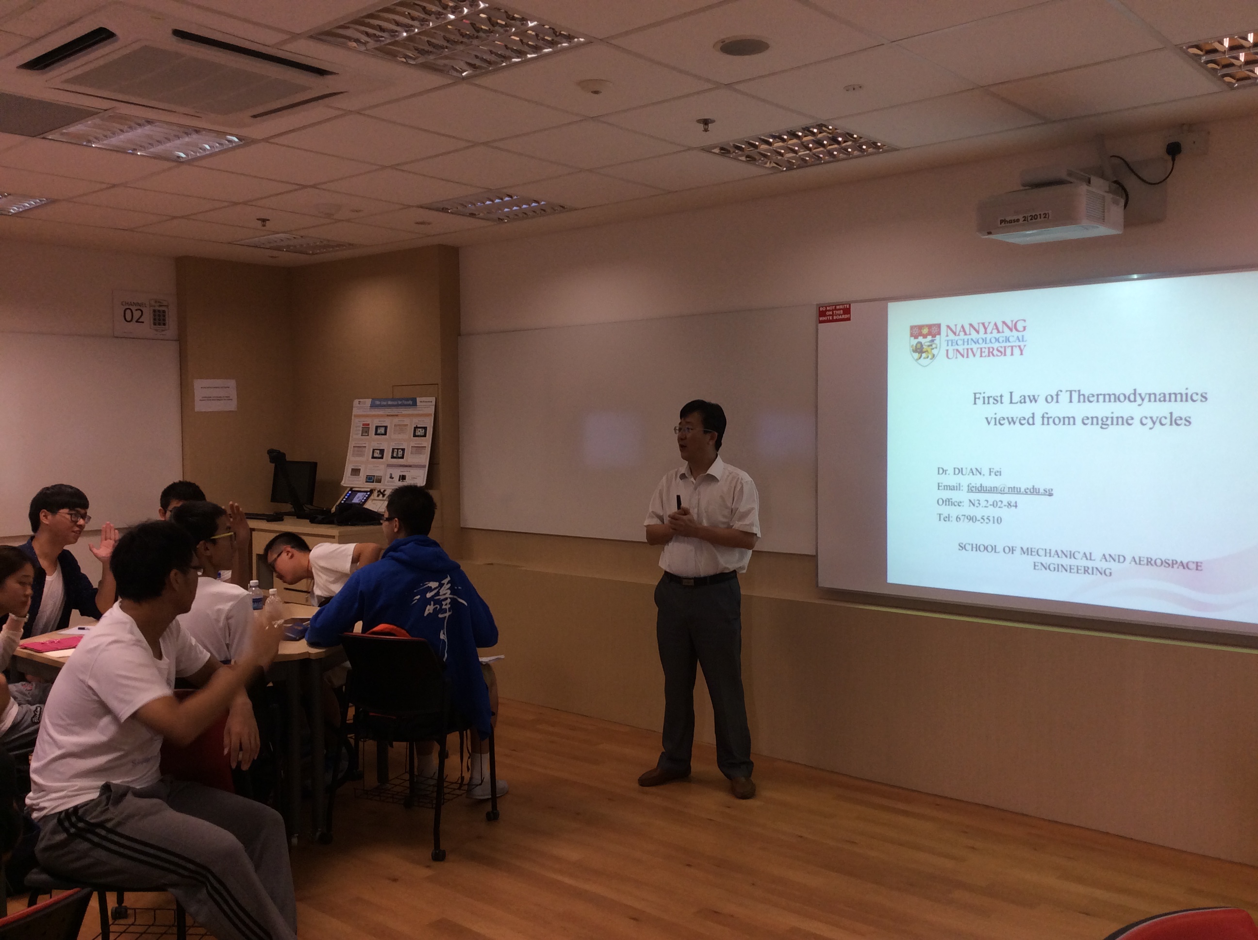 在新加坡南洋理工大学交流访学期间,在南洋理工大学机械与宇航公司副经理Ooi Kim Tiow 教授的安排与大力协助下,同学们先后参加并完成了南洋理工大学机械与宇航工程公司开设,由机械与宇航公司资深教师Wong Teck Neng教授主讲的微观流体力学课与传热学概论课、由机械与宇航公司资深教师Sridhar Idapalapati 副教授主讲的复合材料优化设计课,以及由机械与宇航公司资深教师Duan Fei教授主讲的工程热力学课。经过一周的课程学习,同学们初步接受了航空行业相关的专业基础课程,切身体验了以南洋理工大学为代表的当今世界一流大学的课堂教学风格。这些都拓宽了同学们的视野,增长了同学们的认知能力。